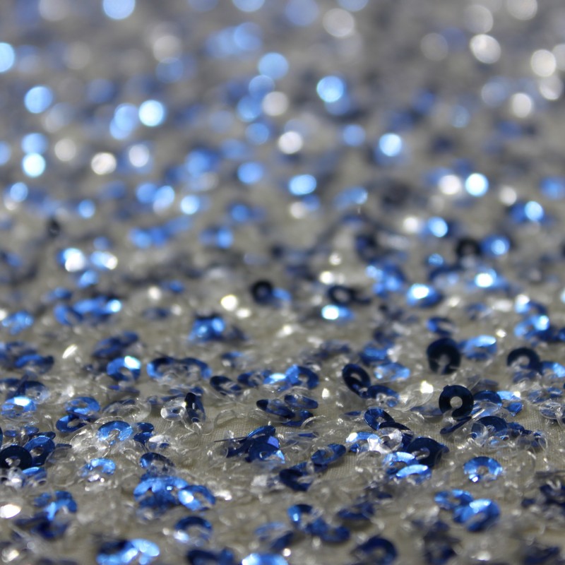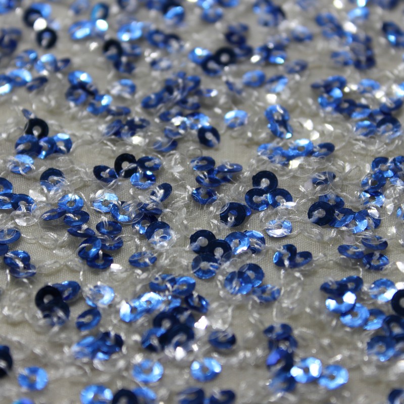 Embroidered fabric with concave film, sequin, bead, polyester silk thread