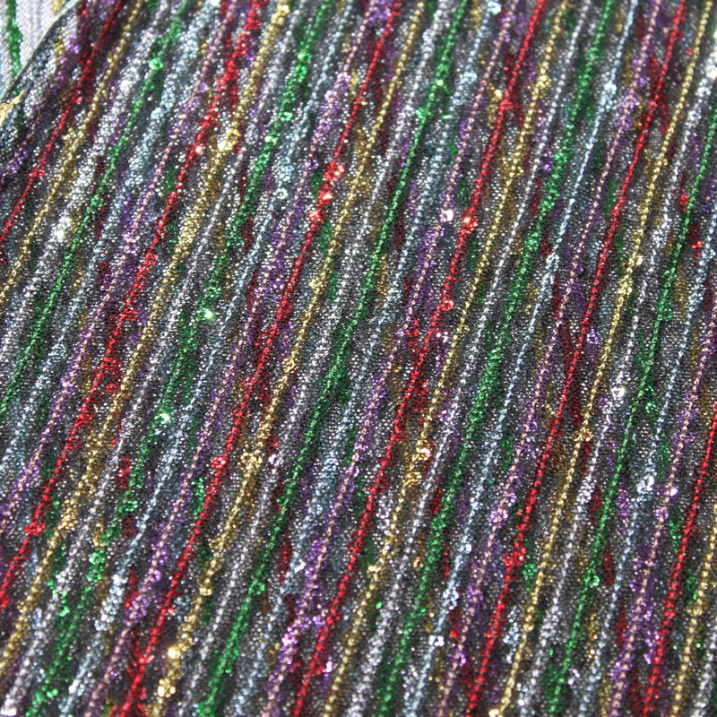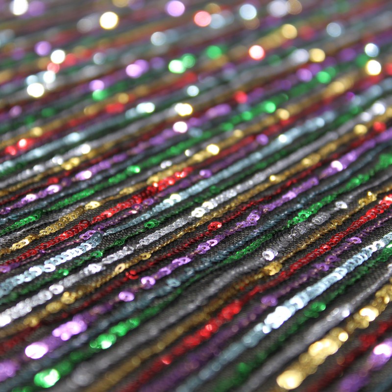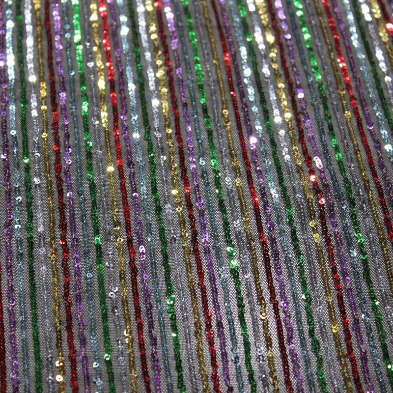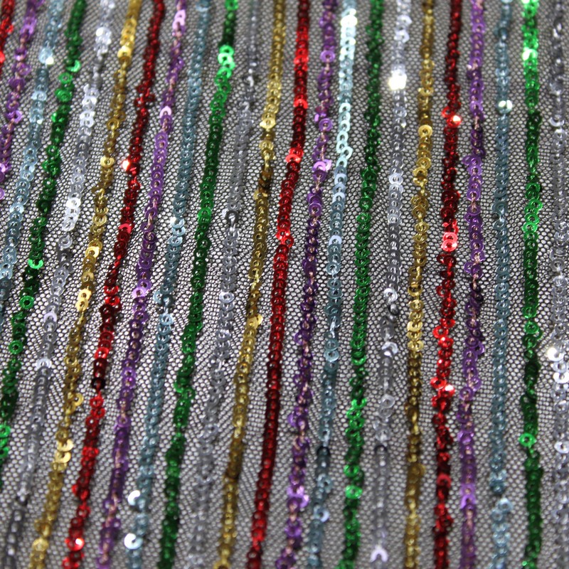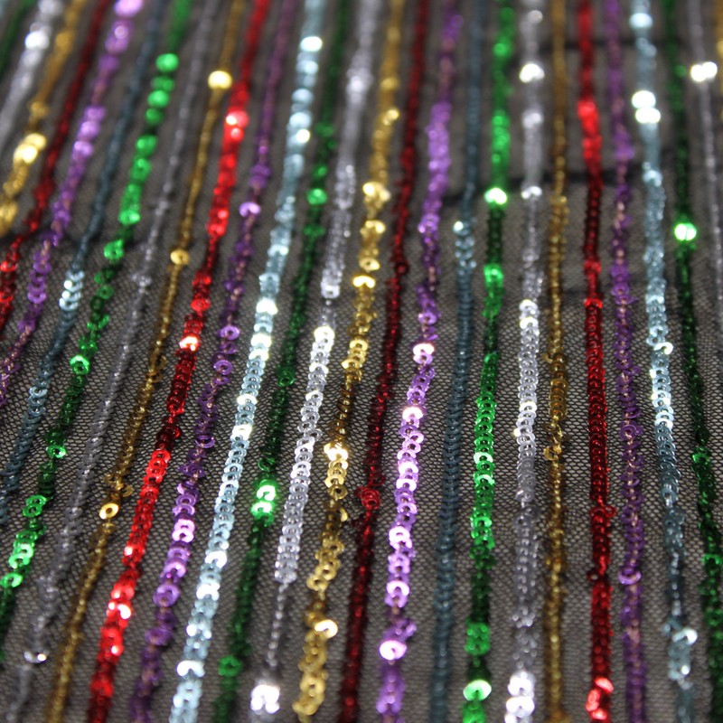 Multi-color straight strip sequin bead embroidered fabric